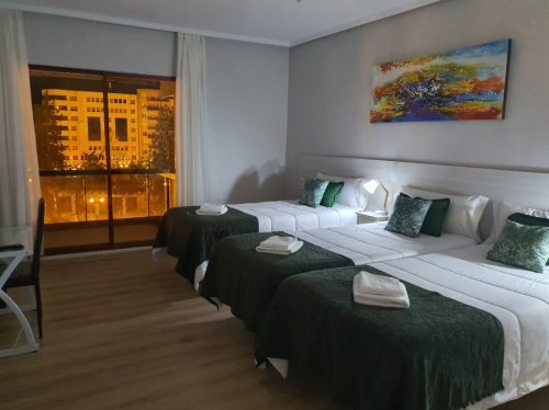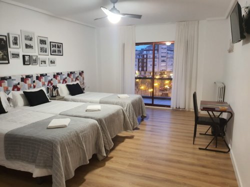 Pensión Muro de la Mata de Logroño, dispone de habitaciones individuales, habitaciones de dos camas y habitaciones triples (con tres camas). Se encuentra en el pleno Centro de la Ciudad de Logroño en el propio Paseo del Espolón, a dos minutos caminando de la Calle San Juan y a tres de la Calle Laurel, muy cerca del ayuntamiento de Logroño y a un paso del centro histórico. Dispone de zona donde poder tomar, cafés y tes para los ocupantes de la pensión e información turística variada. Equipada con TV en todas las habitaciones y wifi gratuita para sus ocupantes. Posiblemente, a día de hoy Pensión Muro de la Mata de Logroño se puede considerar la mejor pensión de la localidad. Es una pensión limpia, cómoda y en una zona privilegiada y con una característica que la hace única: sus vistas inmejorables sobre el Paseo del Espolón y sobre el Casco Histórico de la Ciudad, incluyendo su majestuosa Concatedral de La Redonda, vistas que podrás disfrutar desde tu propia habitación, según la zona de nuestra Pensión en la que te alojes.